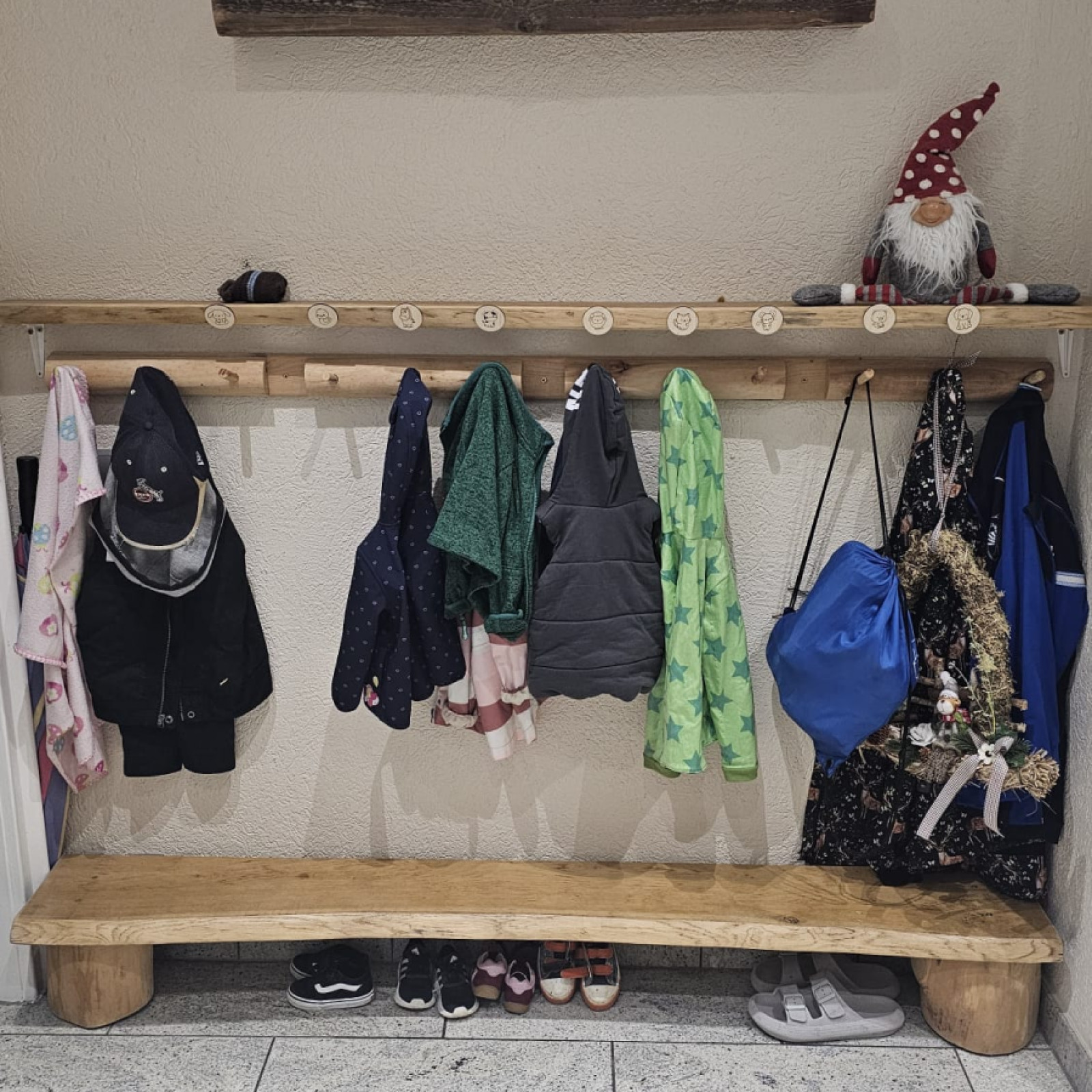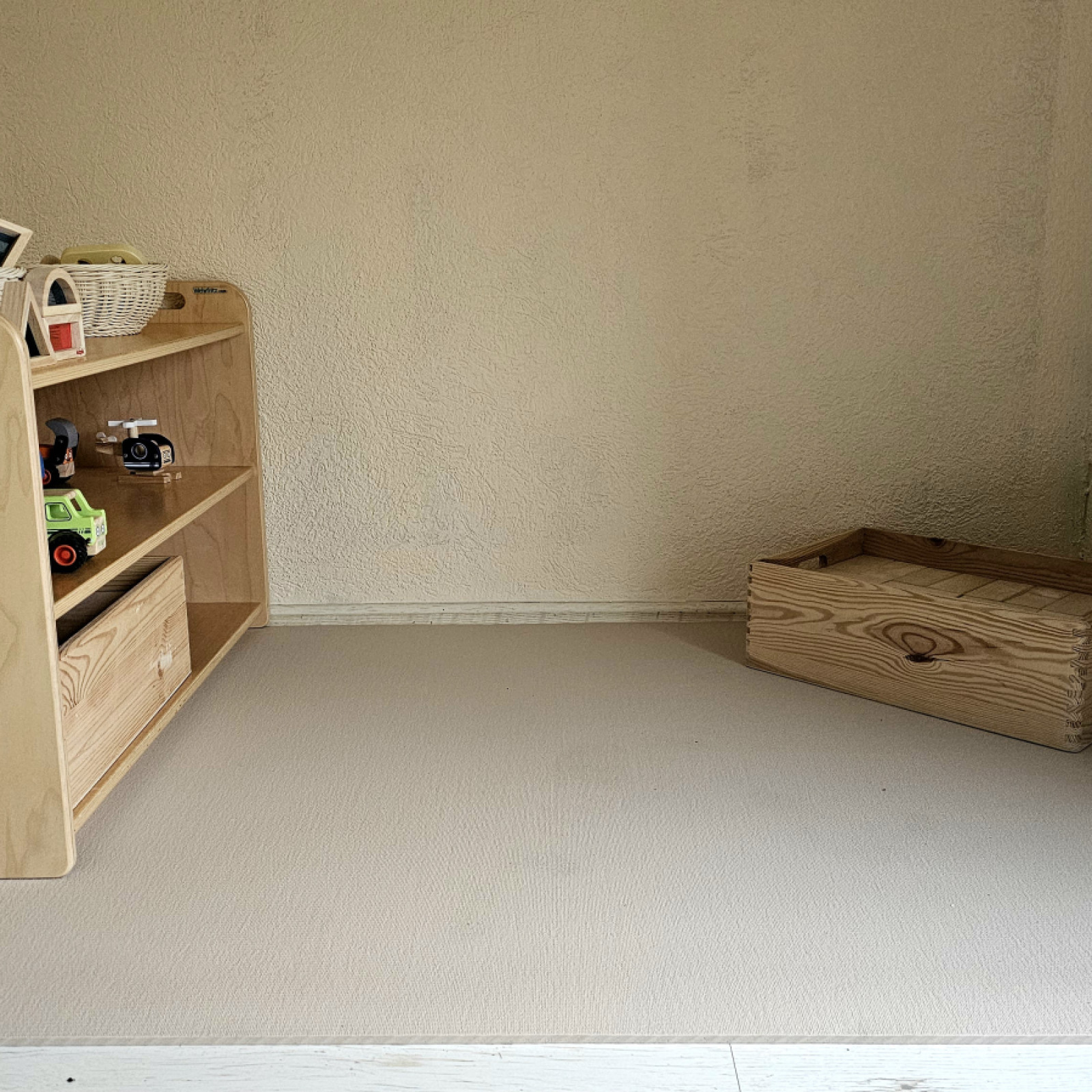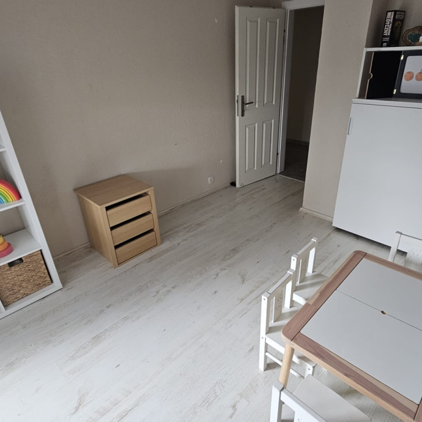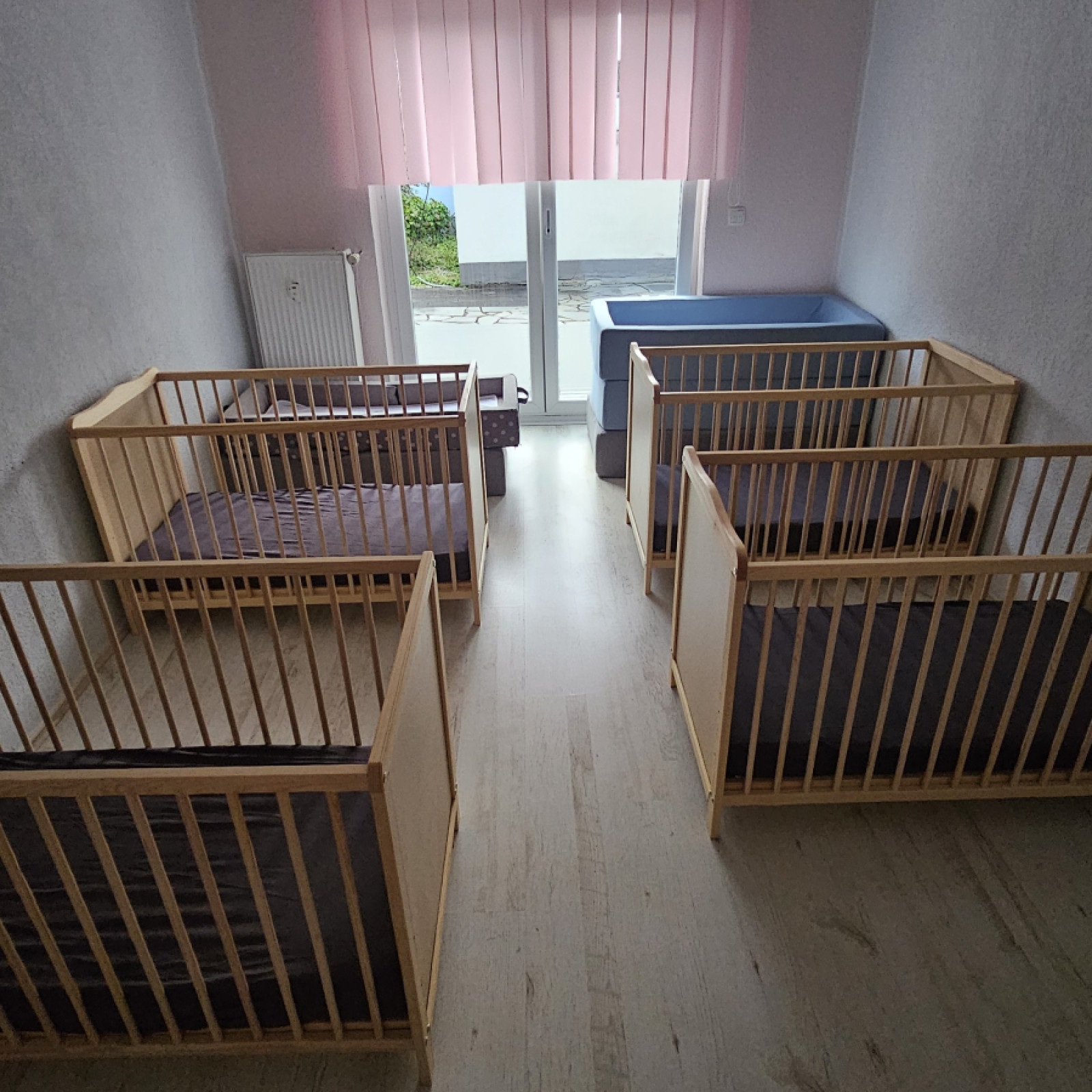 Auf knapp 128 m2 dürfen sich bis zu 9 Tageskinder nach Herzenslust austoben. Dort enthalten sind ein offener Bereich, ein kleiner Kreativraum, ein großer Bewegungsraum, ein Schlafraum, Bad, großer Flur und ein Eingangsbereich.